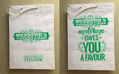 With almost 6 billion trees being cut every year for the paper industry alone, the Karma wood-less paper bags and Stationary, not just saves a tree but actually plants more them for a greener future, making it a great CSR initiative for your brand too.